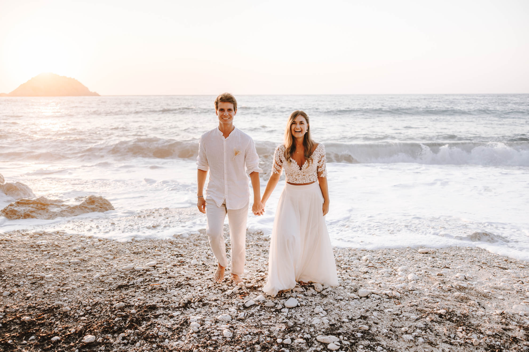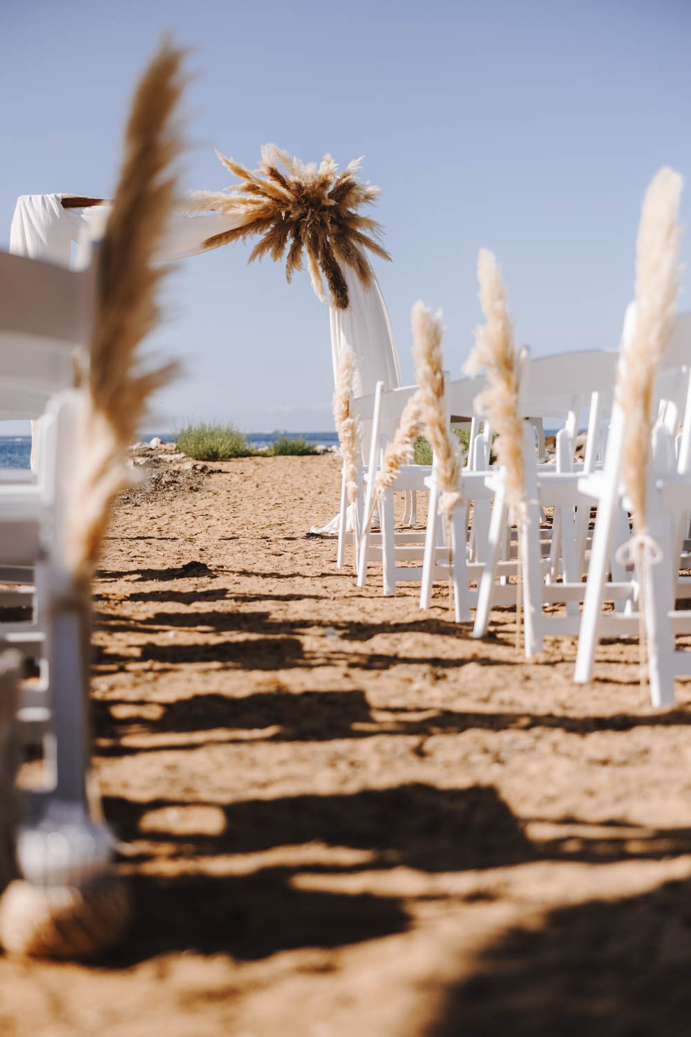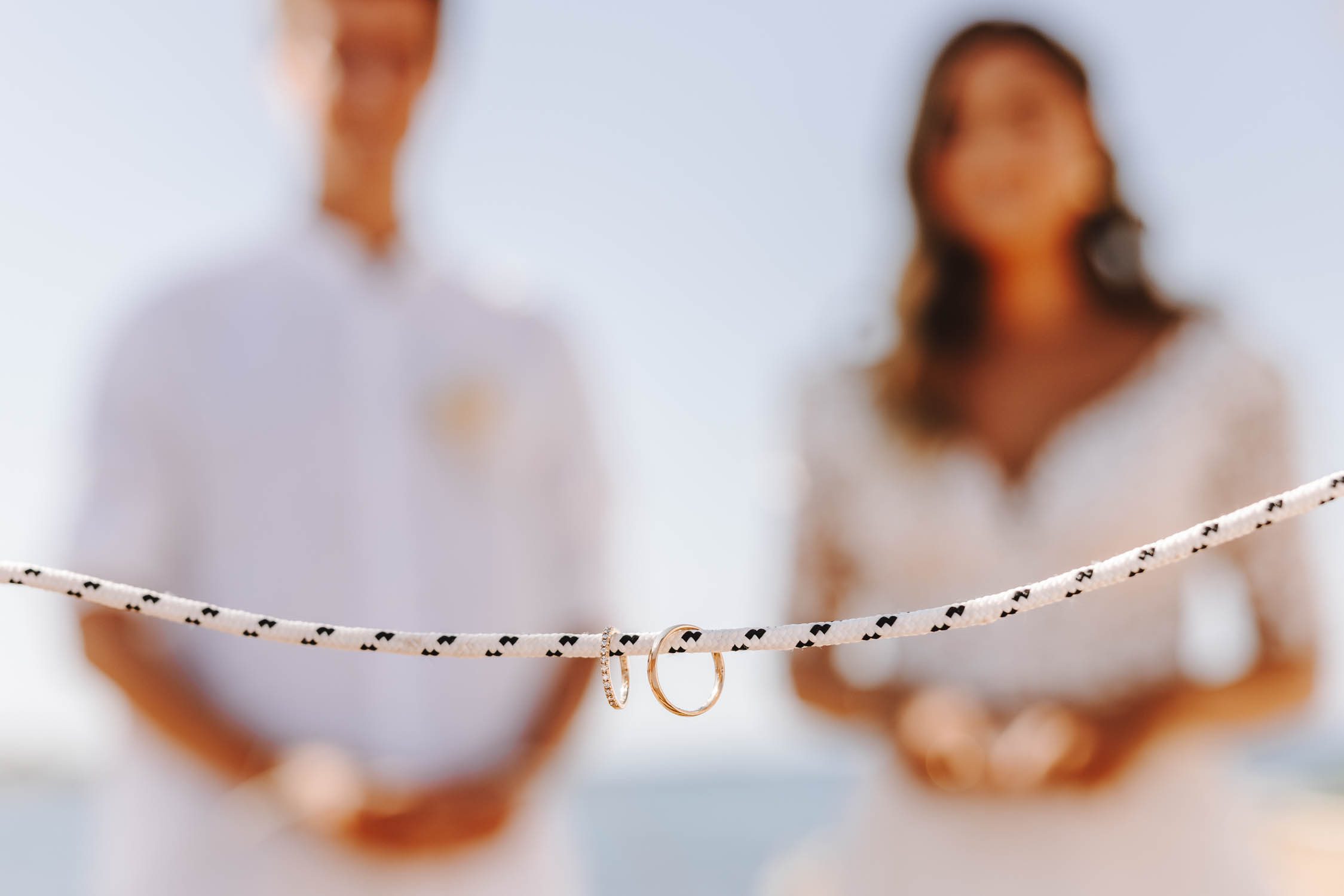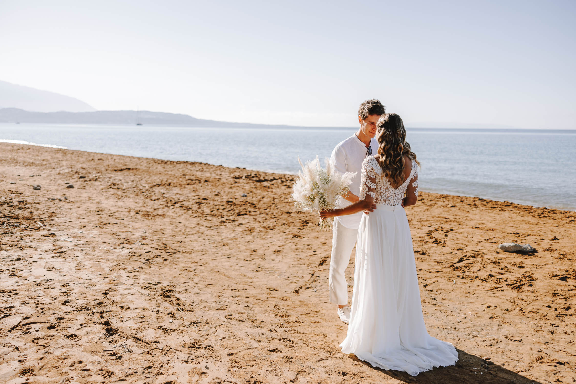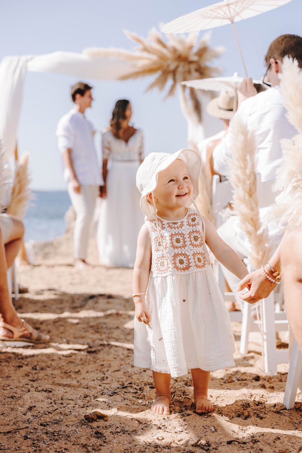 Nach dem innigen First Look habe ich am Sandstrand mit den beiden ein kleines Paarshooting gemacht, bevor es ohne große Pause zur Trauung ging. So früh am Tag war der Strand noch fast leer, und die Zeremonie blieb ganz ungestört – zwei Gäste sorgten mit Gesang und Gitarre für die ultimative Atmosphäre und man konnte die Liebe zum Detail förmlich spüren.