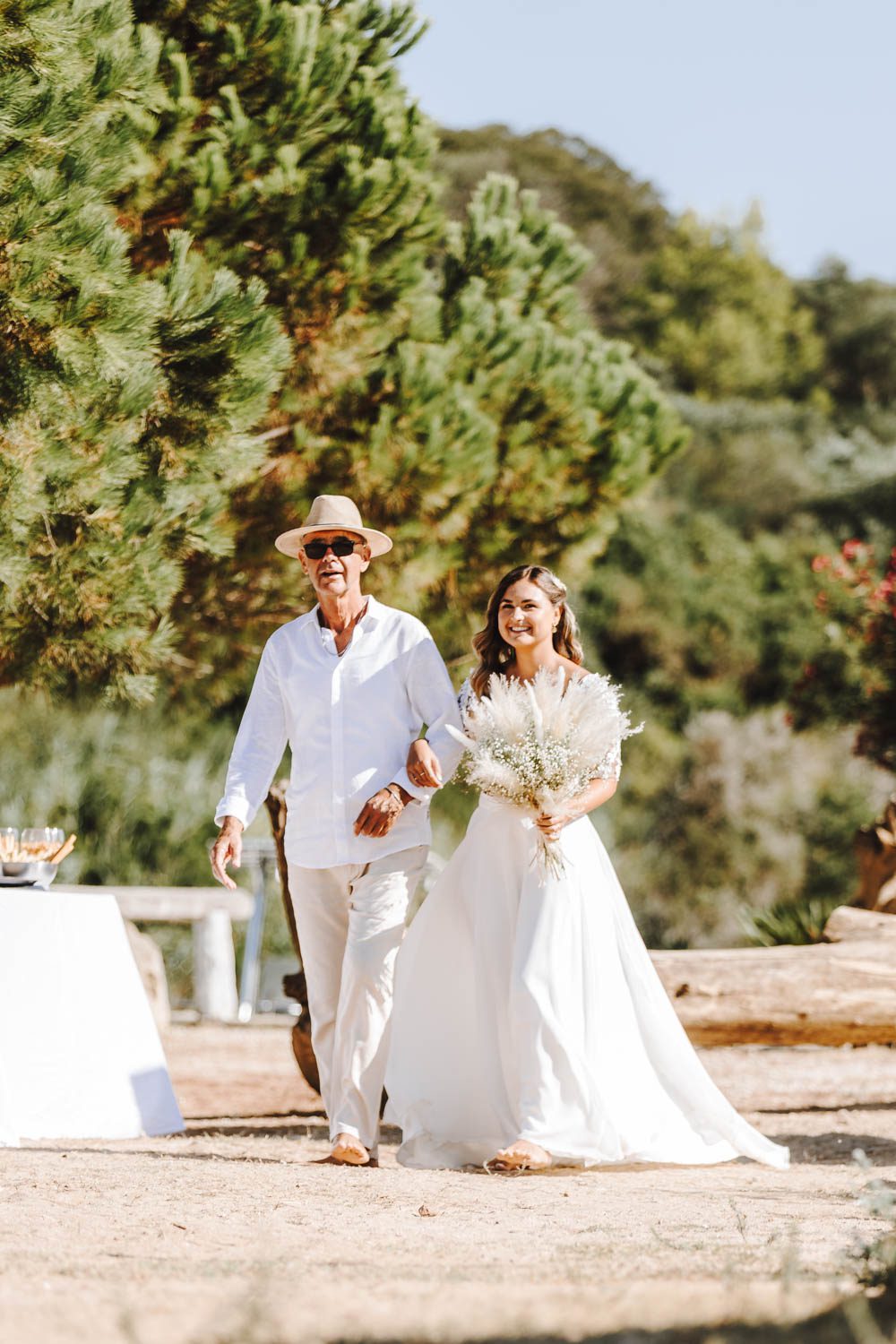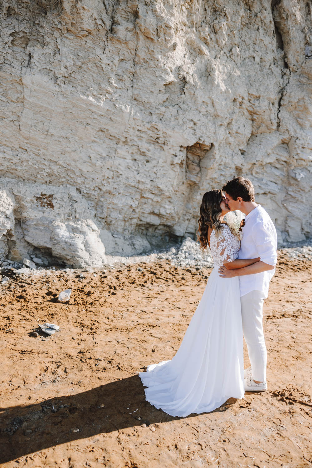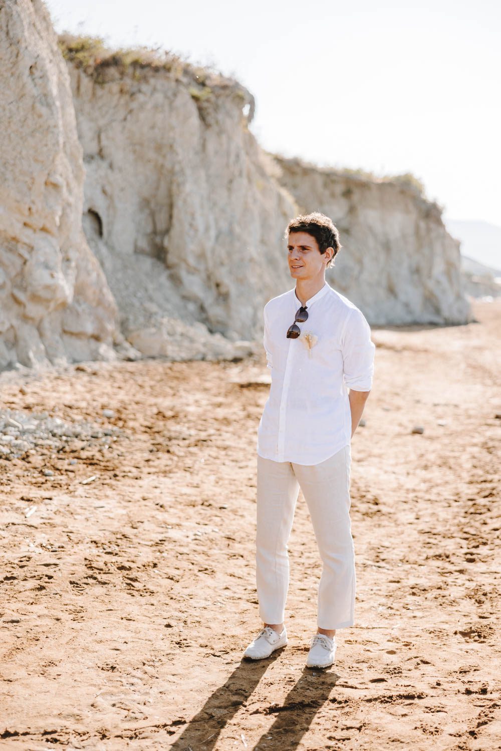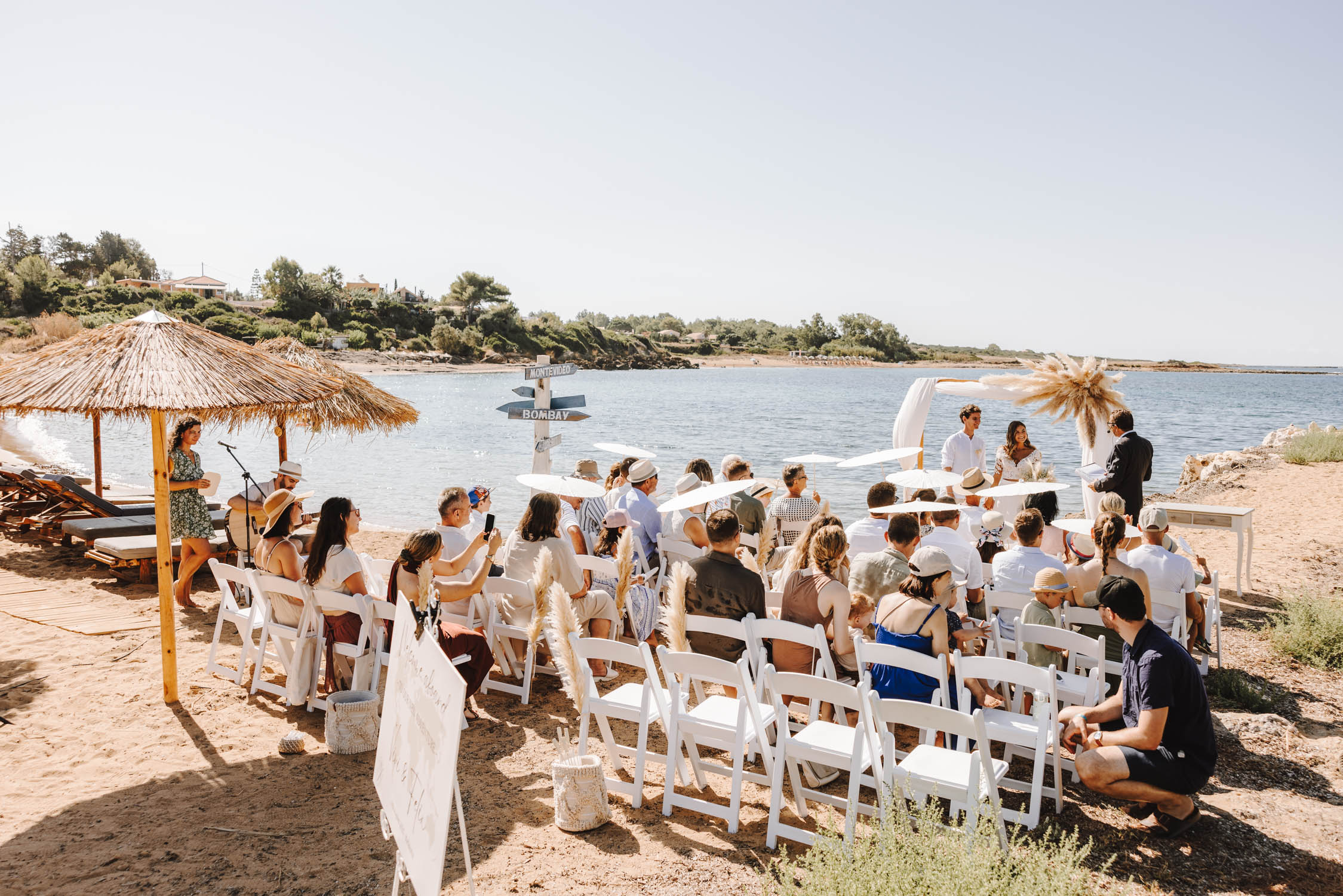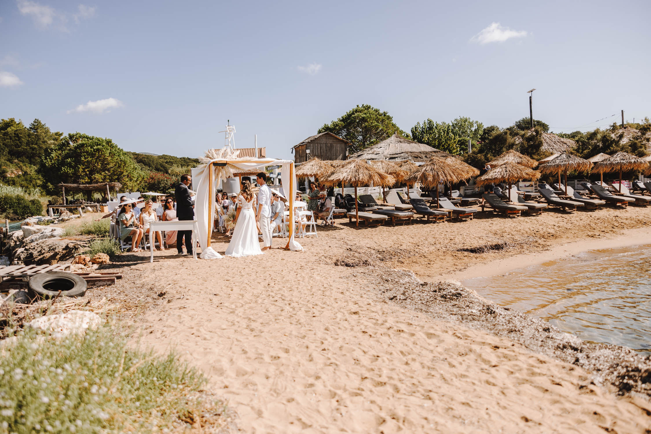 Nach dem innigen First Look habe ich am Sandstrand mit den beiden ein kleines Paarshooting gemacht, bevor es ohne große Pause zur Trauung ging. So früh am Tag war der Strand noch fast leer, und die Zeremonie blieb ganz ungestört – zwei Gäste sorgten mit Gesang und Gitarre für die ultimative Atmosphäre und man konnte die Liebe zum Detail förmlich spüren.